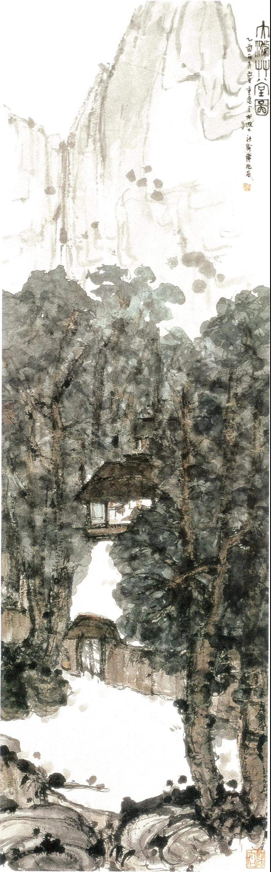 傅抱石 秋林水阁 1925年 南京博物院藏