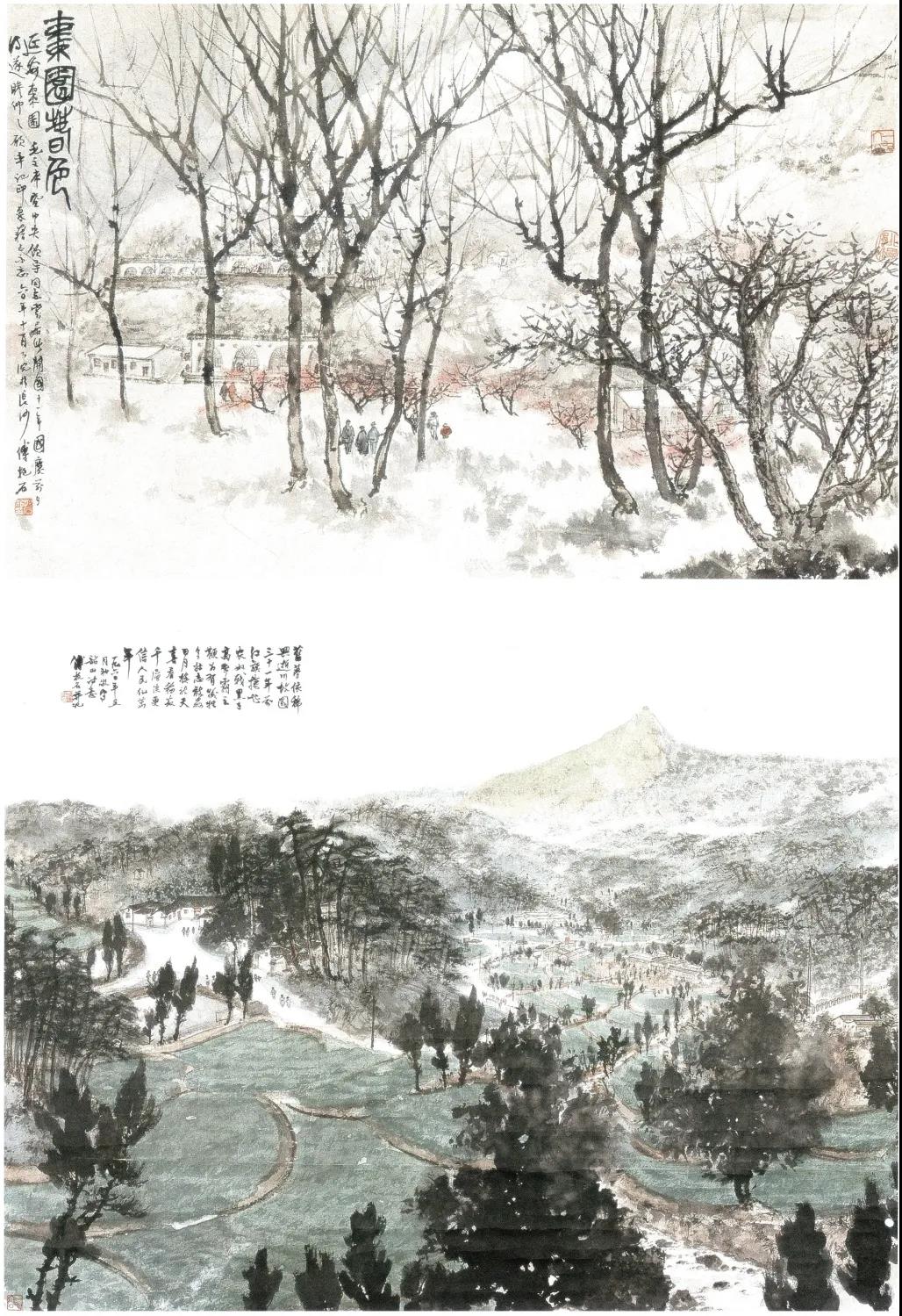 傅抱石 《枣园春色》和《毛主席诗意,七律到韶山》 1960年