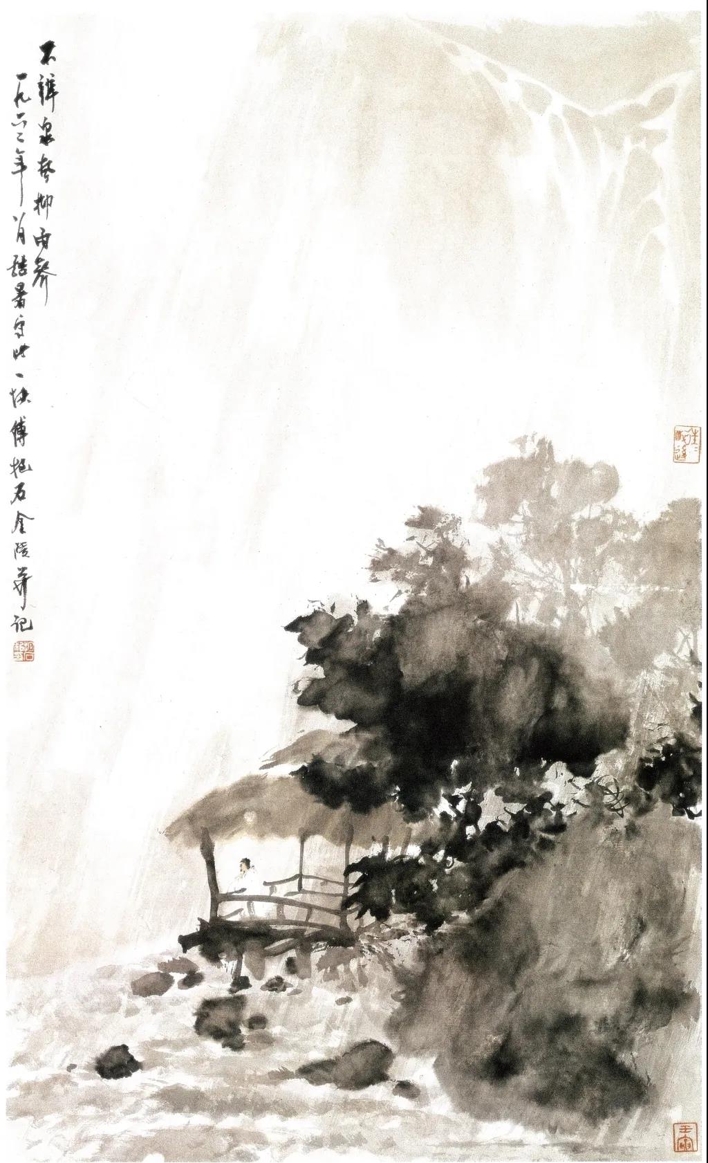 傅抱石 不辨泉声抑雨声 1962年