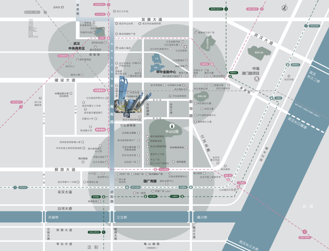 这里还出现了武汉第一个商圈武广商圈、武汉第一条金融街建设大道、武汉市第一条美食一条街雪松路等。