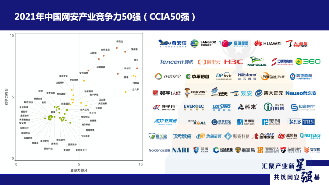 6月16日,中国网络安全产业联盟(CCIA)发布《2021年中国网络安全市场竞争力报告》,三组主要奖项“2021年中国网安产业竞争力50强”(CCIA50强)、“2021年中国网安产业成长之星”(CCIA成长之星)、“2021年中国网安产业潜力之星”(CCIA潜力之星)随之揭晓。在“CCIA 50强”评选中,奇安信位列榜首,深信服、启明星辰、华为、腾讯等知名企业纷纷上榜。