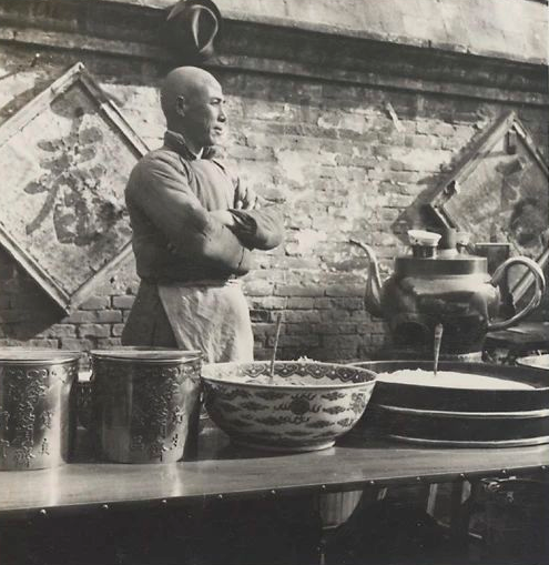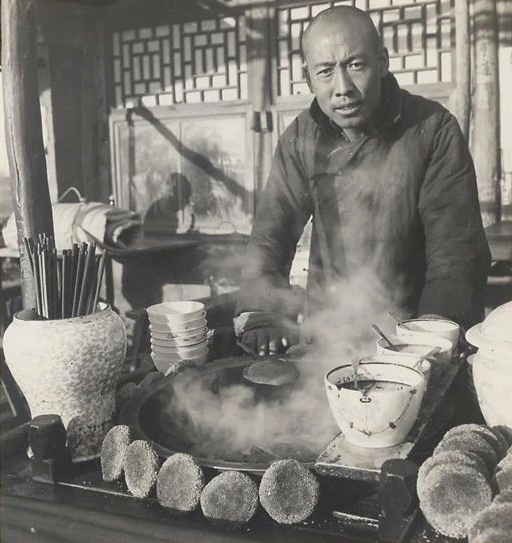 热气腾腾的烧饼摊。烧瓶小哥满脸疑惑,似乎在问:要不要来一个?