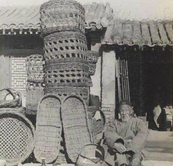 竹、草编器具摊。堆叠的这么高,非常引人注目!