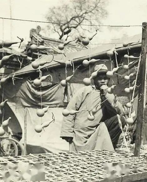 葫芦摊。一个藤上七个瓜,各具特色的小葫芦,任君挑选!