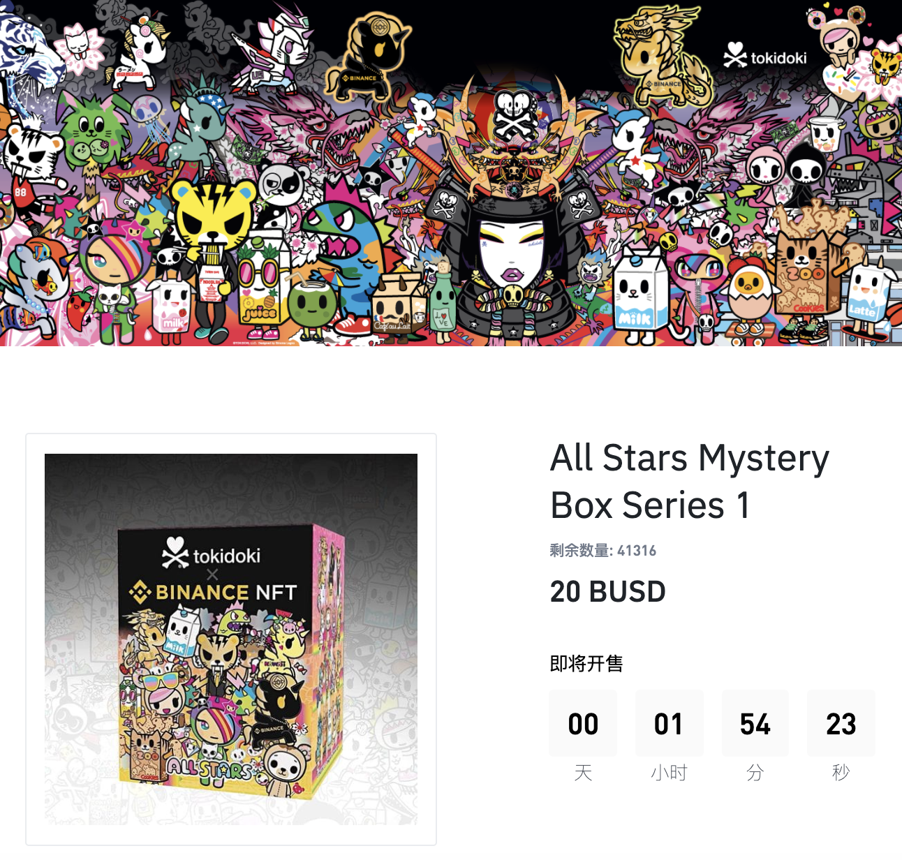 「Tokidoki x Binance 限量版NFT盲盒」将开售