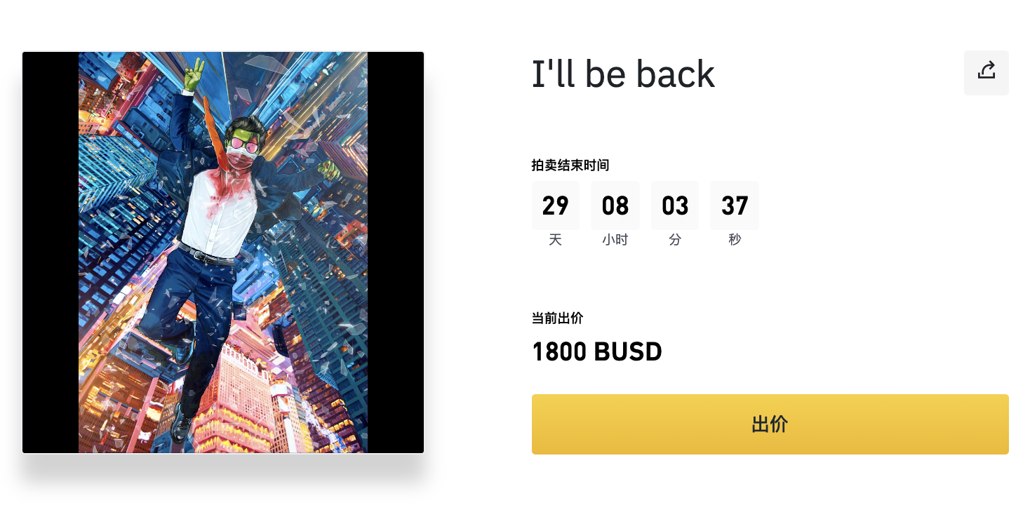 原创作家作品《I'll be back》拍卖价1800 BUSD