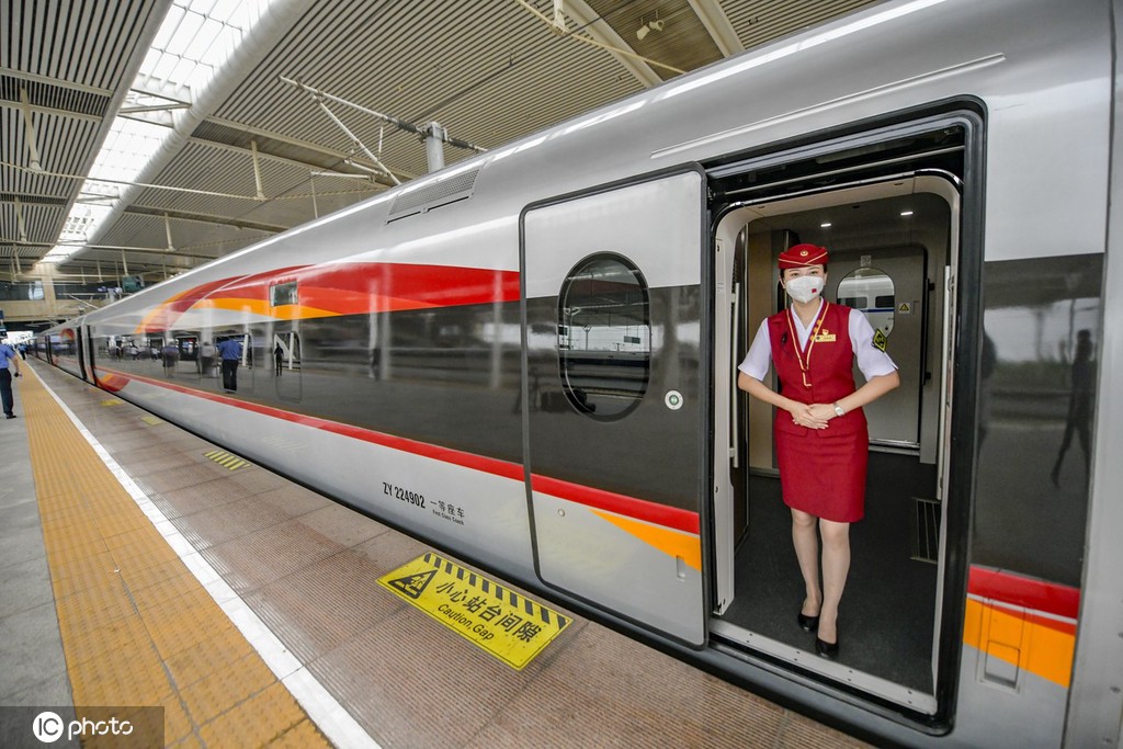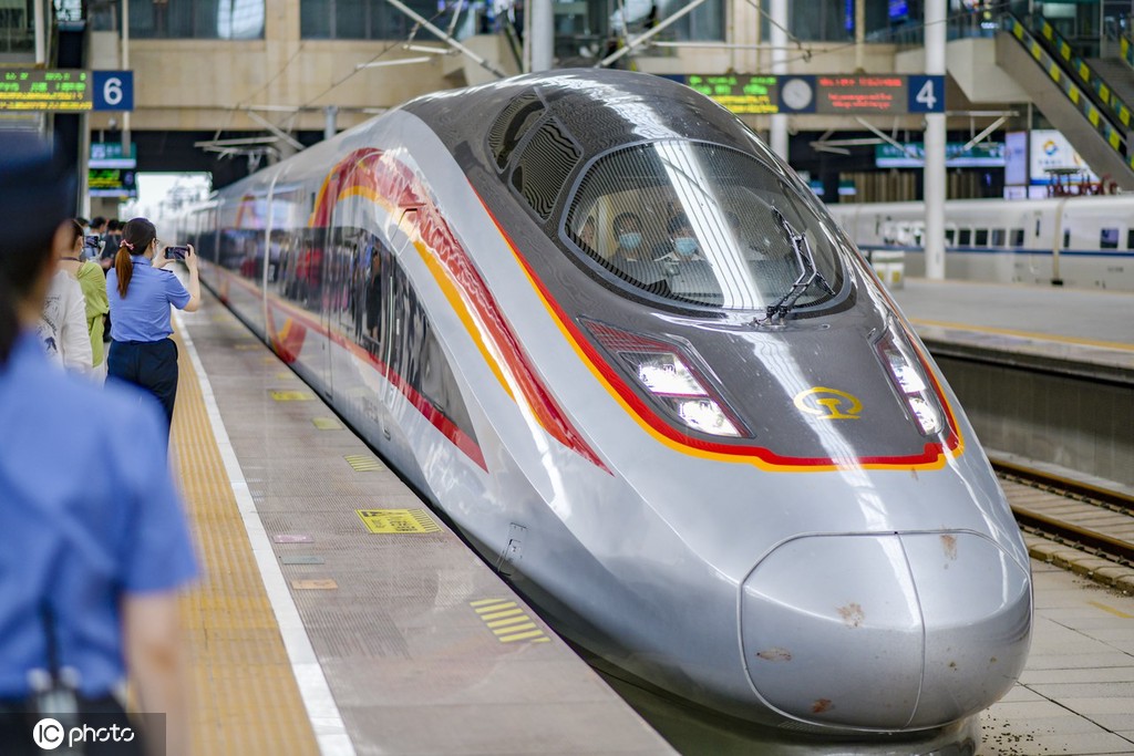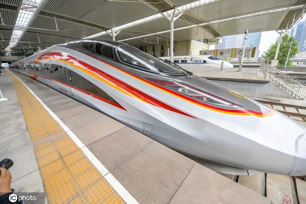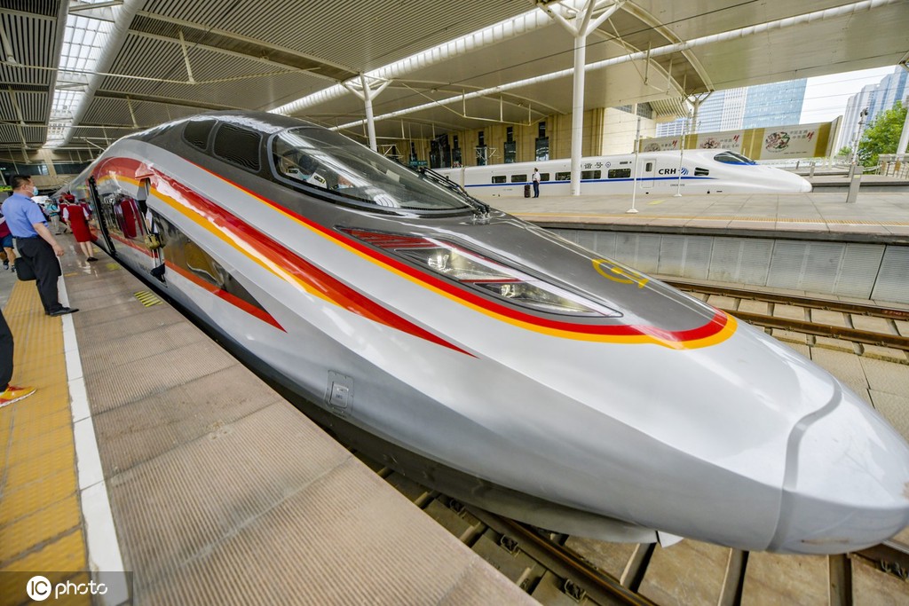 2021年6月25日,山东省济南市,全国铁路实行第三季度列车运行图,复兴号智能动车组将扩大至京沪、徐兰、成渝等高铁开行。此次扩大开行,中车四方CR400AF-Z(8辆标准编组)和CR400AF-BZ(17辆超长编组)两种编组的新型“复兴号”智能动车组将正式上线投入运营,迎来首秀。