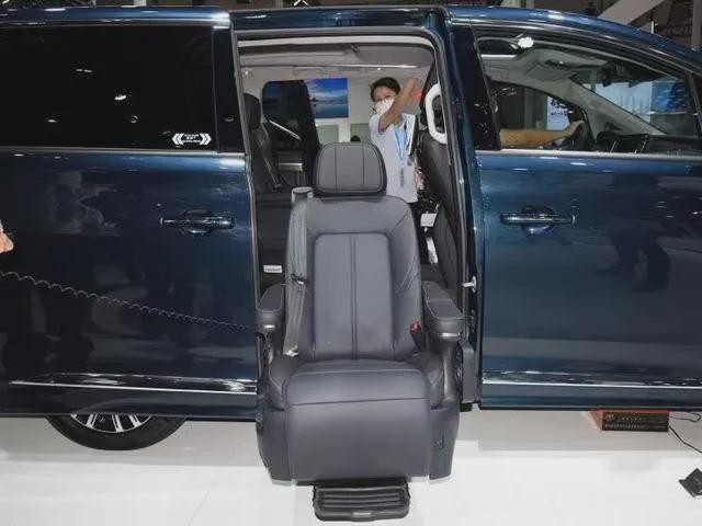 首先是大师系列新增的福祉版,售价为27.98-29.98万元。这两款车的重点在于第二排座椅的独立设计,副驾驶后方的座椅可以通过电动机械机构探出车外并下降至地面,方便乘客上车。这样的无障碍设计主要是为老人或行动不便人士准备的,如果是商用的话这种配置可以备不时之需,家用则可以方便地带老人出行。