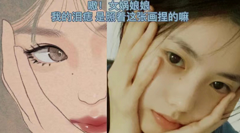 刘浩存脸上的泪痣和某动漫人物的泪痣长在同一个地方,她就打趣说自己的泪痣是女娲娘娘捏的。