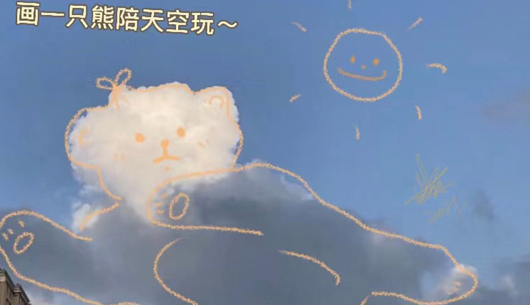 继续翻看她的日常,就算是天空上的云,也会被刘浩存画成小熊的模样,看来她是很留心生活的,内心住着一个小精灵无疑了。