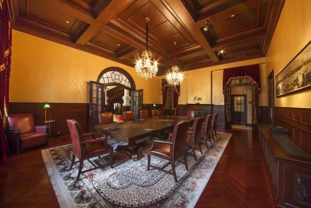 科学会堂内部科学会堂一号楼修复完成后,目前已对外开放(目前仅接受团体预约参观)。走进室内,深红色的地板上铺着欧式风情的地毯,在昏黄柔和的灯光下,散发着复古的味道,厚重的木质旋转楼梯、漂亮的彩绘玻璃也让整个空间神圣而又浪漫。