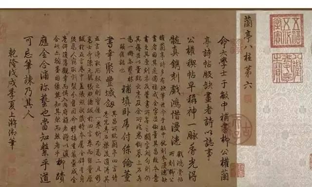 第六柱,刻的是清乾隆进士于敏中补修柳公权所写的兰亭阙笔;