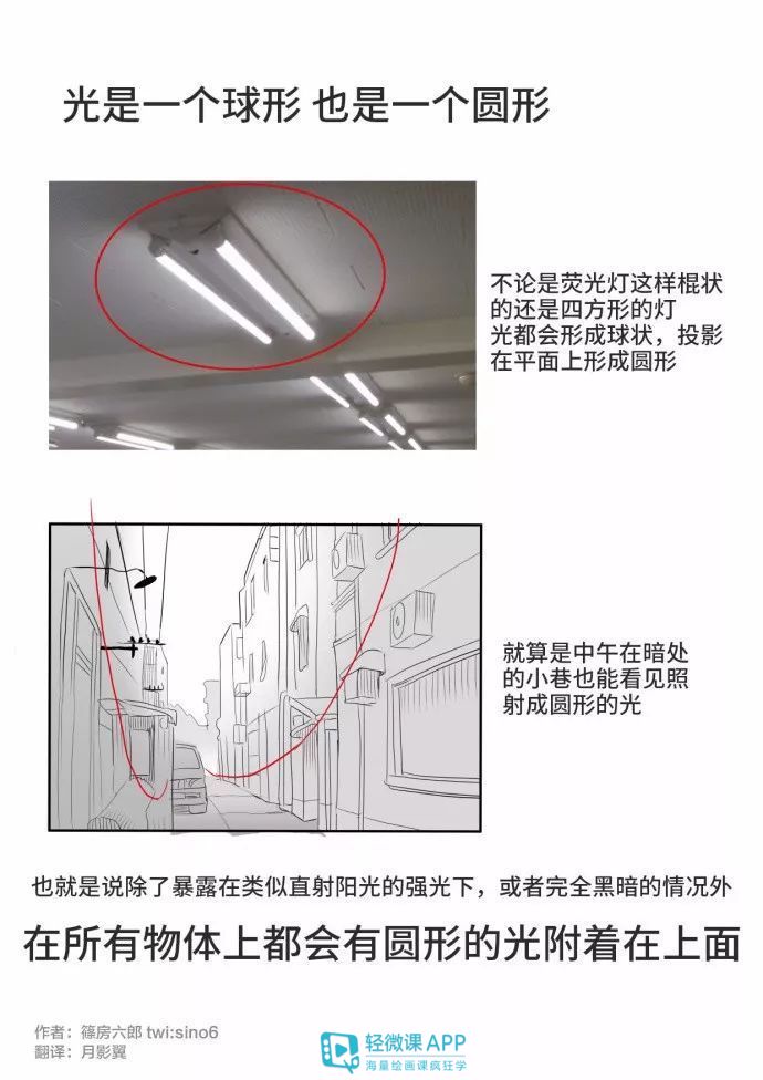 首先我们得有一个认知,光是一个球形也是一个圆形:不论是荧光灯是棍状的还是四方形的灯,光都会形成球状,投影在平面上形成圆形。就算是中午在暗处的小巷也能看见照。也就是说除了暴露在类似直射阳光的强光下,或者完全黑暗的情况外,在所有物体上都会有圆形的光附着在上面。