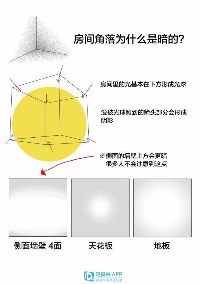 房间里的光基本在下方形成光球,没被光球照到的箭头部分会形成阴影。怎么才能画出光影感?光有哪些表现形式!