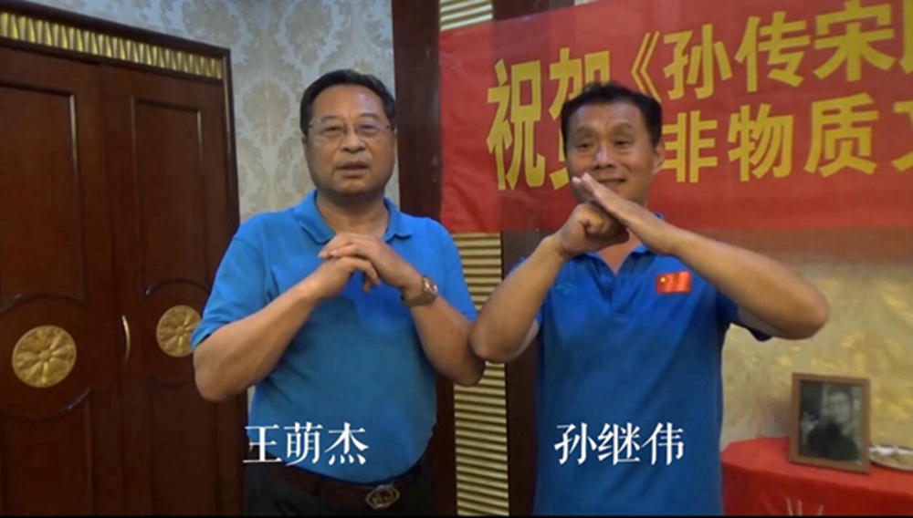在巜孙传宋氏形意拳》非物质文化遗产申报成功之际,王鹤捷与孙继伟师兄弟相见相识,誓把形意拳发扬光大。于是,在中国孔子书画研究院孔庆旭院长及鸟虫篆第六代传人李森等大家的见证下,于2021年6月25日举行了隆重的代师收徒仪式。