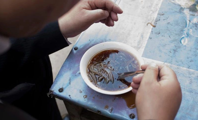 这说的可不是国家级保护动物,而是一种用红薯淀粉制成的特色小吃。制成的娃娃鱼飘散在酱醋汁里,还真像是一条条小鱼。喝娃娃鱼一般在夏季,来一碗冰镇娃娃鱼,爽滑弹牙,中间的胡萝卜榨菜点缀其中,酸甜可口,解渴又可作零食挡饿。