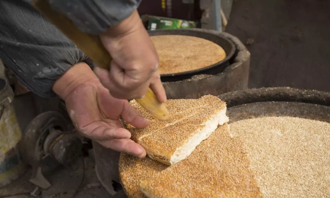 烧饼刚出炉,汪着油透着香,表皮烤得酥脆,一口咬下去,还有咯吱咯吱的响脆声。在整个制作过程中烧饼的炉子绝对是一大亮点,它的形状类似一个球体,里面委以炭火烤制,如果你有幸能吃到刚出炉的烧饼,一定会幸福的流泪!