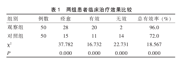 观察组治疗总有率达到 96.0%,而对照组治疗总有效率为 72.0%