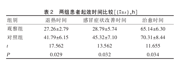 观察组患者感冒退热时间、改善时间及治愈时间明显少于对照组