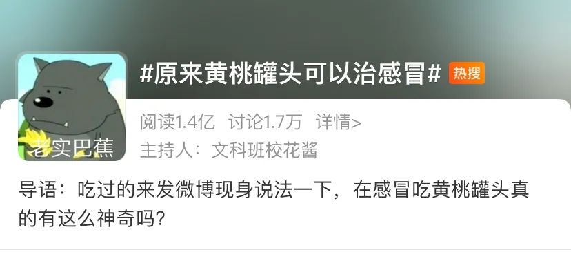 但壹读君必须提醒大家:生病了还是要首先考虑去医院。吃黄桃罐头不算医疗行为!