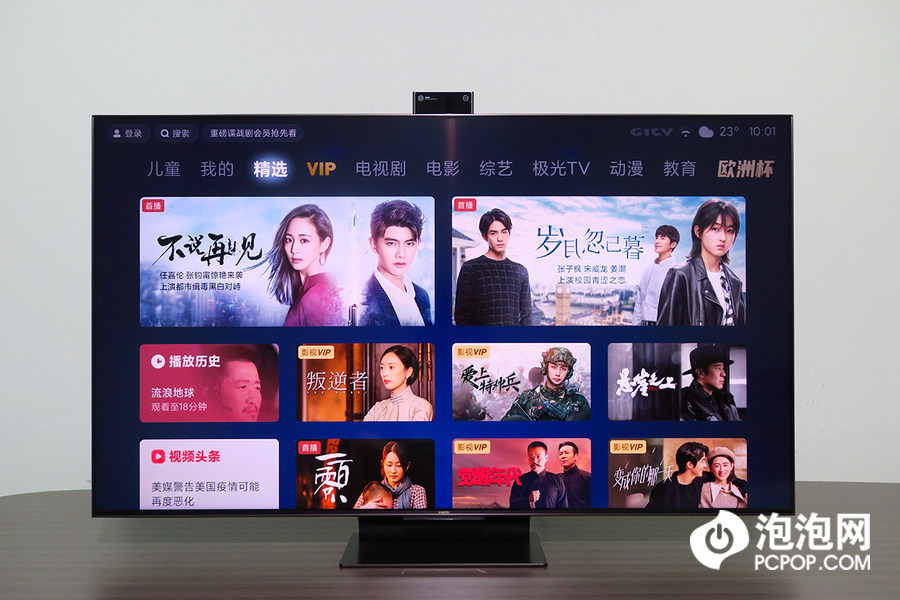 在小米电视6至尊版顶部搭载了一个可升降的双摄镜头,支持手势操作,并且也可以进行视频通话,摄像头的加入也让电视可以实现更多的功能。