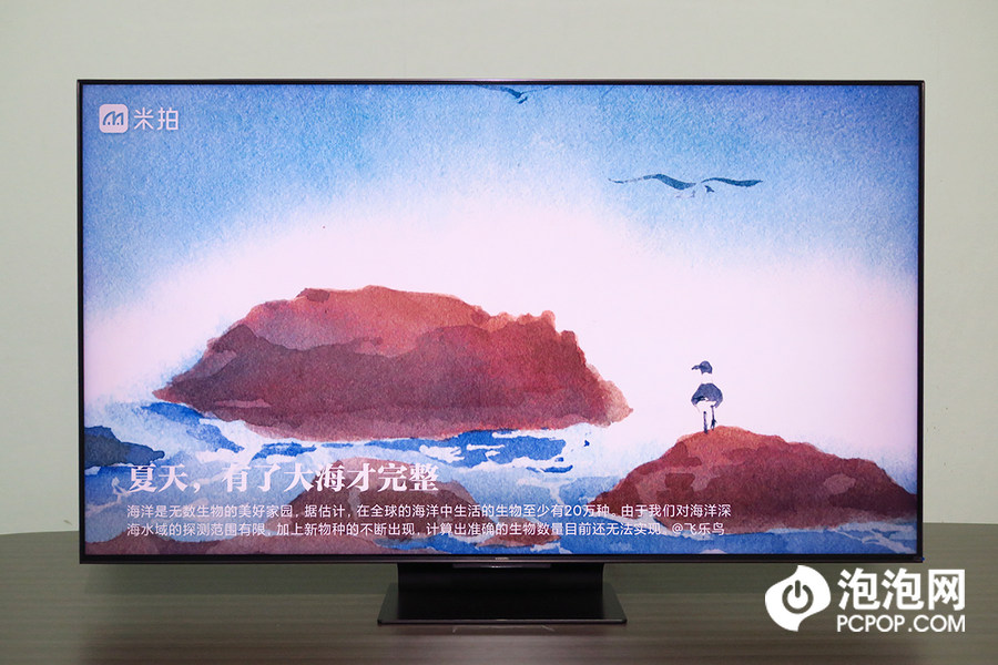 我们拿到的是55英寸版本,除此之外,小米电视6至尊版还提供65英寸和75英寸版本。小米电视6至尊版采用了窄边框的设计,不光是上、左、右三遍,底部的边框也非常的窄,能够为用户带来更加沉浸式的体验。