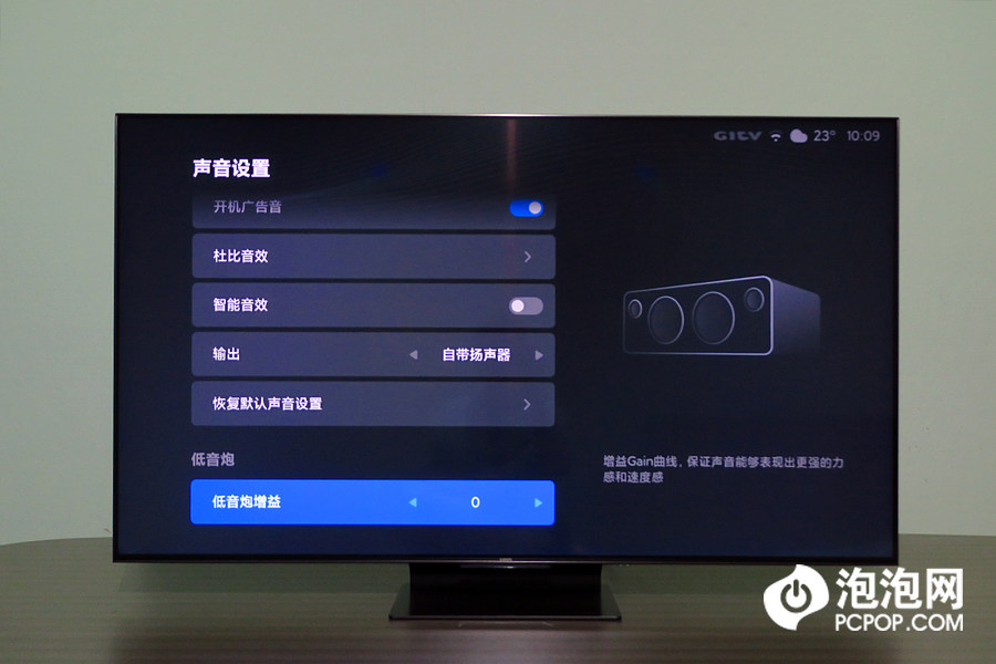 小米电视6至尊版支持杜比音效,并且可以调整低音炮的增益效果。