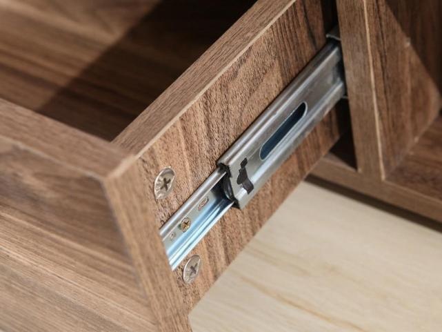 一般来说,衣柜内部的柜子多用侧滑轨,而对承重性要求比较高的抽屉多用托底轨。