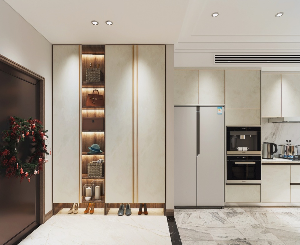 除此之外,现在在定制柜中也非常流行“一门到顶式”的拉手,看上去比传统拉手更加简约大气,用在柜体上能瞬间提升整个空间的高级感。
