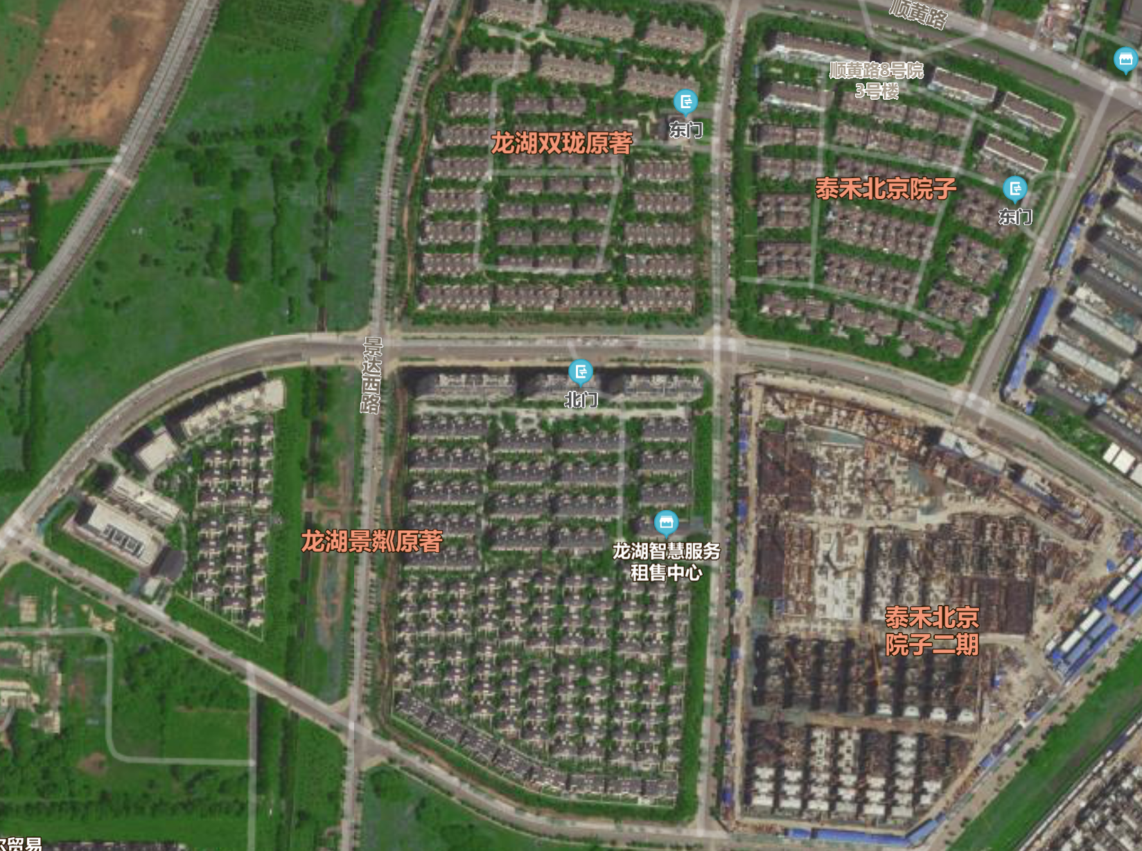 优山美地D区由北京顺义新城建设开发有限公司开发建设,包括合院别墅、双拼、景观类独栋等200余栋别墅。