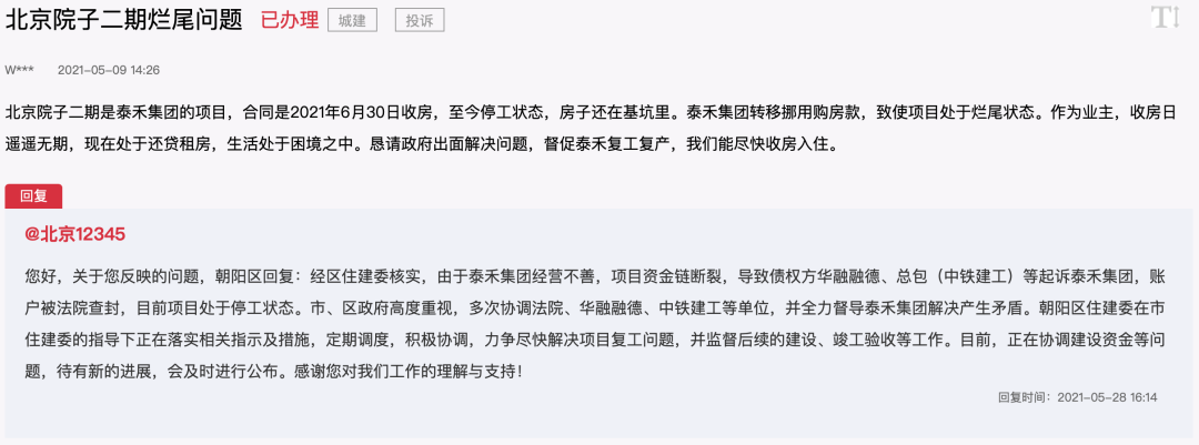 至少,目前来看,泰禾北京院子二期复工之日还遥遥无期。