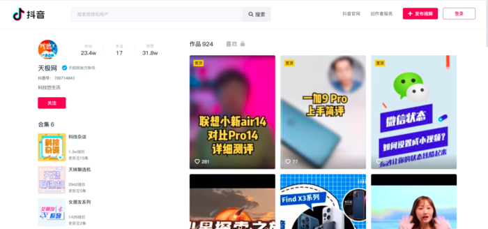 抖音网页版也没有加入视频清晰度的调整,这与其他视频网站网页版有所不同,看惯了1080p甚至4K视频的用户可能有些不太习惯;还有就是在个人主页中,你并不能像在APP中点击“关注”来查看你所关注的用户,如果忘记了想寻找的抖主ID还是有些麻烦的。