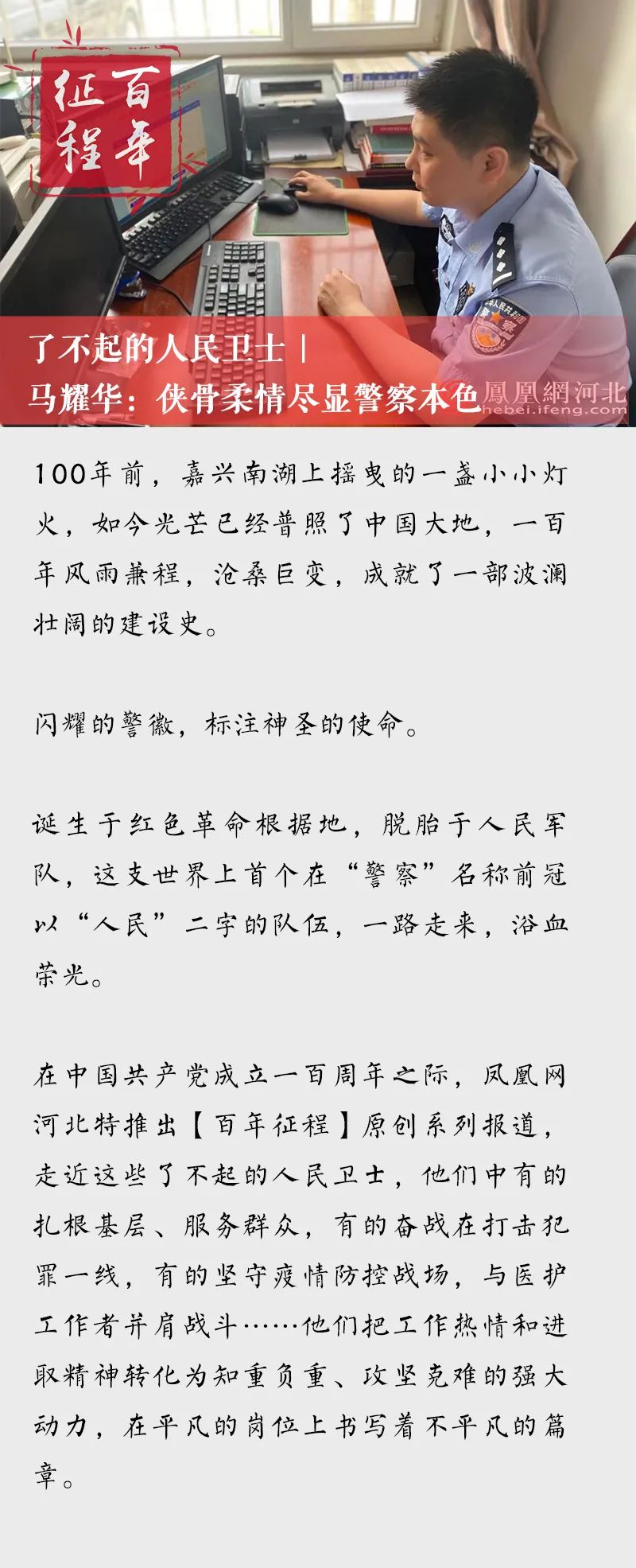 周末加班时,马耀华时常会接到年仅4岁的孩子来电:“爸爸,我想你啦,什么时候能回家呀?”每当接到这样的电话,他的心里都酸酸的,感到十分愧疚,但作为一名党员和人民警察,他无怨无悔。他不是不想家,不是不顾及自己家人,只是在他心中明白只有祖国这个“大家”安定了,自己的“小家”才更幸福。一大一小的背后,是他们责任和担当,奉献和付出。