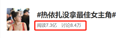 很快,“热依扎没拿最佳女主角”的话题冲上热搜,获得了7亿多阅读量,8.4万人参与讨论。