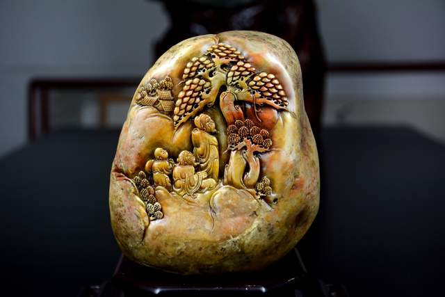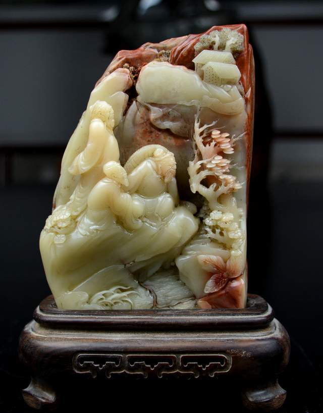 寿山石雕收藏家黄坚说:寿山石天生丽质,五彩斑斓、温润脂凝,是我国珍贵的彩宝石。历代的雕刻家匠心独运、巧夺天工,赋予寿山石艺术品极高的艺术欣赏和珍玩收藏价值,因此,寿山石艺术品深受历代文人墨客乃至帝王贵族的喜爱。寿山石艺术品一起美丽的外表、丰富的文化内涵,被誉为中国四大“国石”之首。