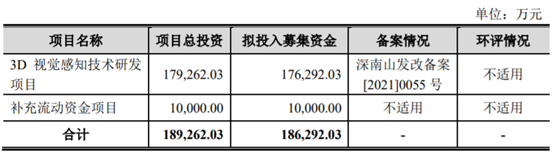 募资18.9亿元,投向3D视觉感知技术研发项目