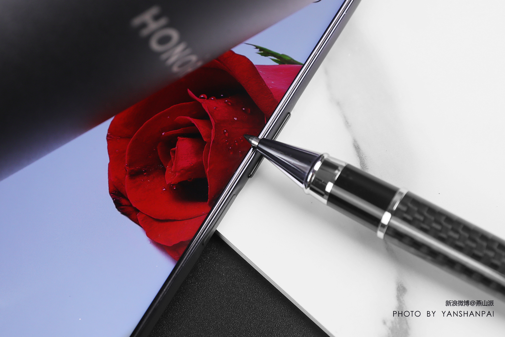 荣耀X20 SE运用先进工艺,把左右边框直接做到了1.3mm极窄,上边框也只有1.35mm,最终带来了94.2%的2000元内最高屏占比。大家可以通过上图看下,所有边框几乎和圆珠笔头相当。结合边框处的反光,视觉上荣耀X20 SE的屏占比要显得更高。而且因为是直面屏,不用担心因为反光影像屏幕边缘内容的浏览,机身可靠性相比曲面屏手机也要更高。