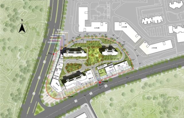 社区内两大景观节点与外部景观相呼应,既可以让人们在鲜氧中生活,也能独得一方的静谧,仿佛公园里的家。