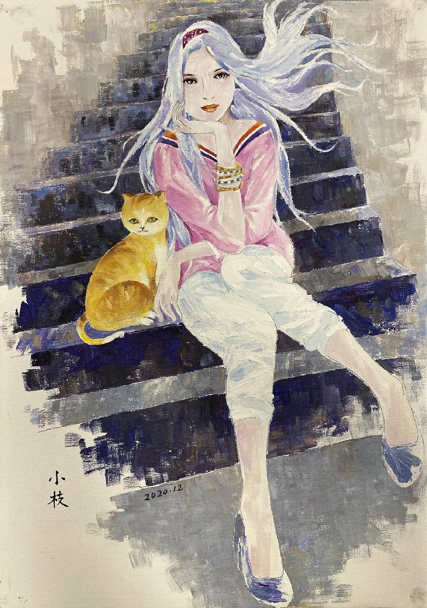 《期盼》丙烯 42×30cm