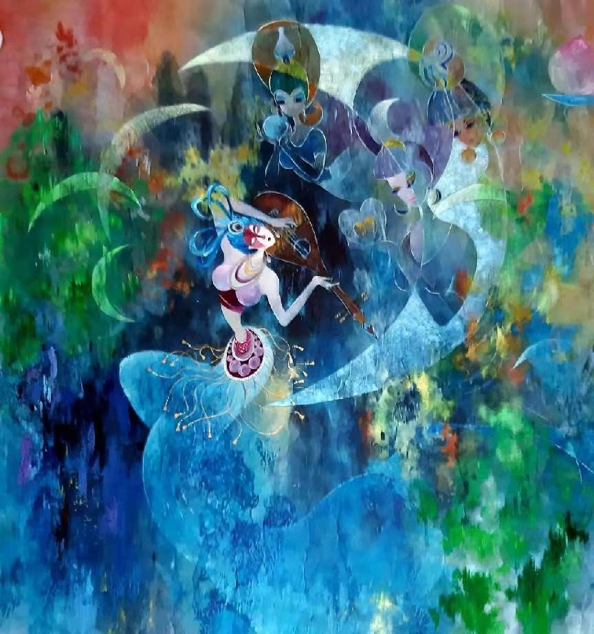 如今技达精谓巧,艺达精谓妙的林女士,在经历了油画的写实、中国画的写意磨砺之后,致力于“虚实相生”丹青哲学的新塑造,在画里用色块表现心灵的秘籍,用线条结构空间的玄机,具像里作抽象,抽象泊具象,画有超实,亦有梦幻!所画舞者,丰姿多神,因简而练,惟妙惟肖的姿态,总是带人令人醉赏的魅力内涵。让人在她的画里游目骋怀,总有“此画是谓上品,观感大有不同”的感叹!