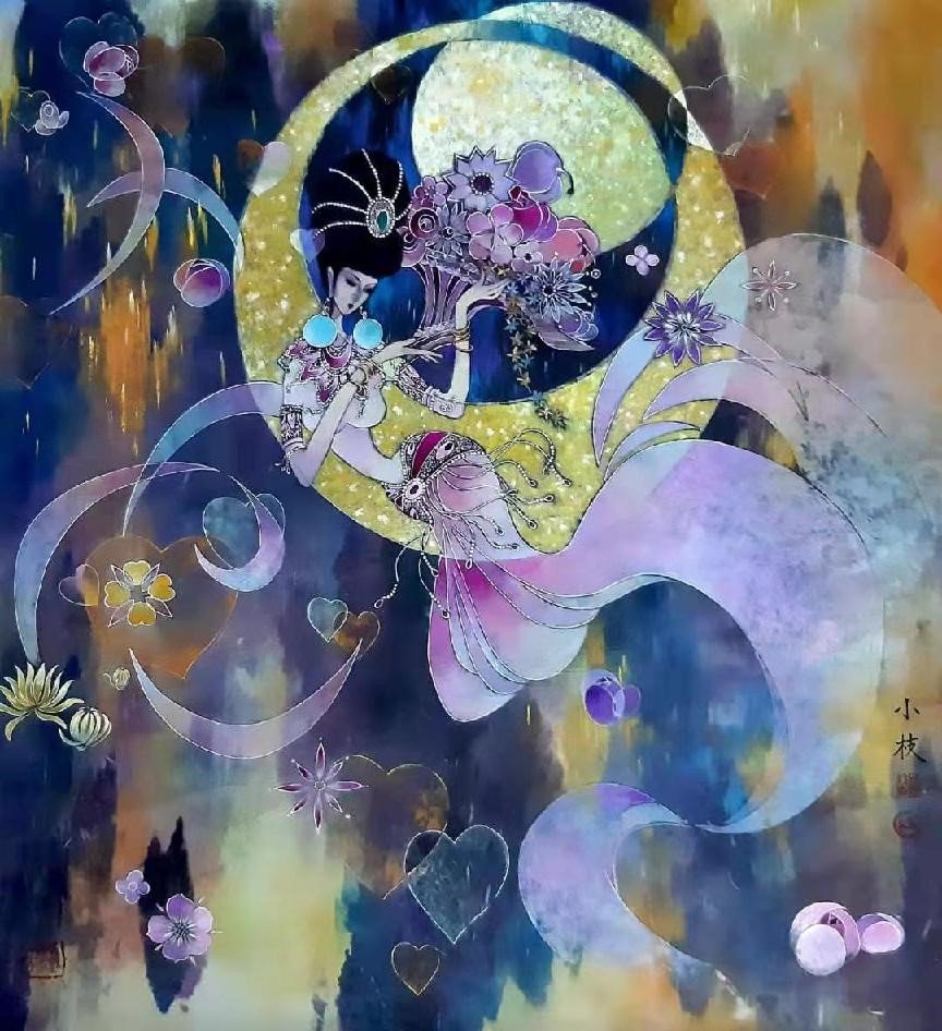 作为一名女画家,她天然对色彩有着极强的解析能力,所以心源色块,可作乾坤垂相!用墨与彩去表达天人合一的哲学思想,启迪人心循法悟道的要妙!色彩被层层复沓,亦可以依水作泽。易经镜像,可在墨彩间前后相随,左顾右盼,中国画法介入文化自信,让她的画可以惊艳全世界!这就是她的画不分老幼,不分南北,皆可以读懂愿意品味的重要原因。由是,她的画很耐看,有着艺术与哲学的双重影响力。