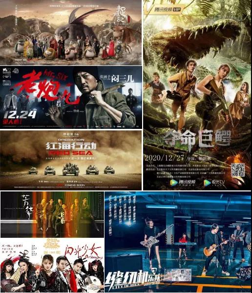 《捉妖记》《老炮儿》《红海行动》《缝纫机乐队》《西游2》《闪光少女》《芳华》《建军大业》《石狮爱情故事》《夺命巨鳄》《摆摊吧,后浪》《涂白》《动力》《梦想工作室》《火线麻辣烫》《暗杀者》《兄弟情义》《我只为我自己喝彩》等