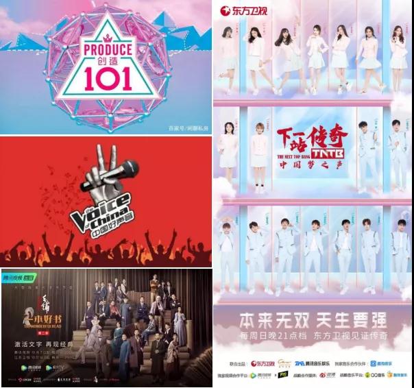 《中国梦之声》Ⅰ第一名艾菲、《中国梦之声》Ⅱ第四名伊尔盼、《下一站传奇》Ⅲ陈子华、《创造101》李紫婷、《偶像练习生》黄书豪、《中国好声音》Ⅰ朱克 崔天琪等选手、《一本好书》、《少年中国说》、《厉害了我的课》、《最美茶艺师》、《男生宿舍》、《美丽俏佳人》、《文旅之声》等