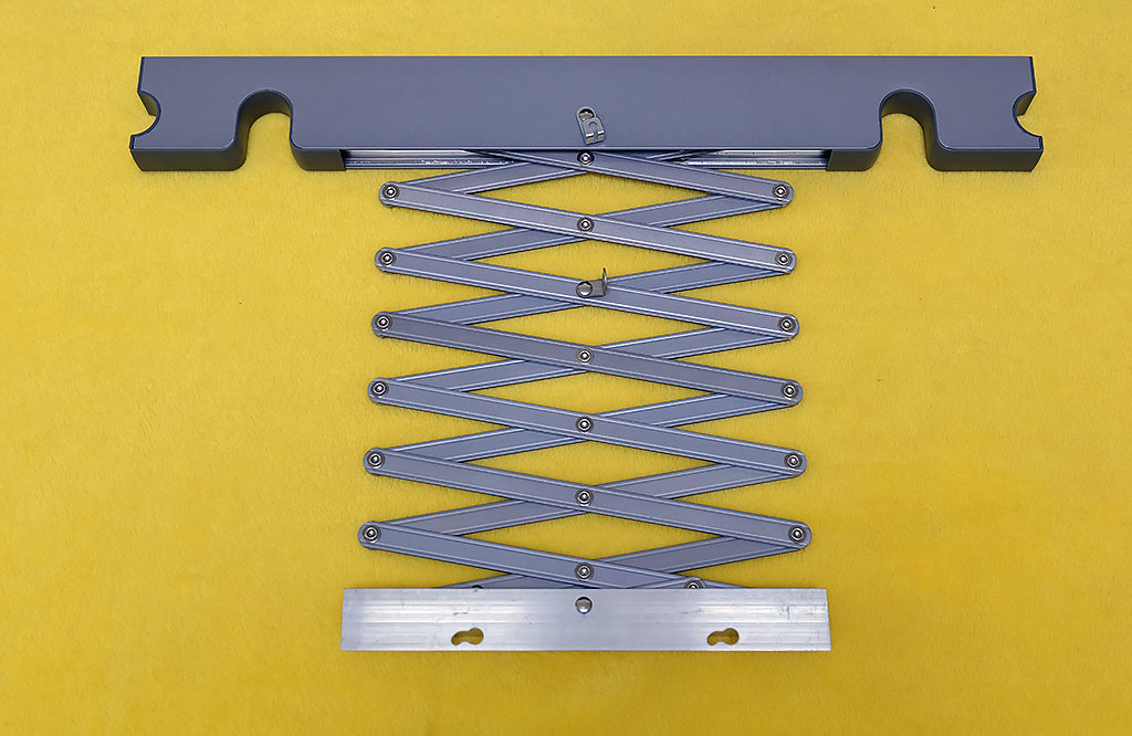 另外云米为用户提供了2组剪刀架,这个剪刀架的作用可以解决晾衣杆前后偏沉的问题,因为其采用的是双侧单根钢丝绳的悬挂设计,所以有了剪刀架的设计,也就完美解决了前后偏沉的问题。