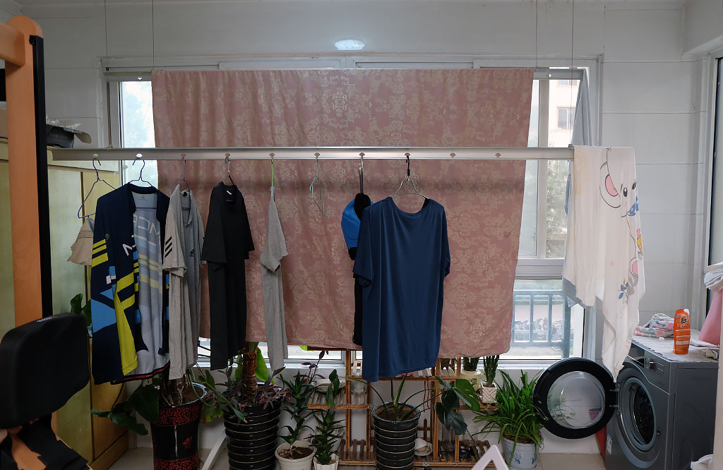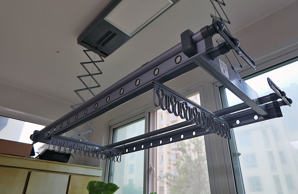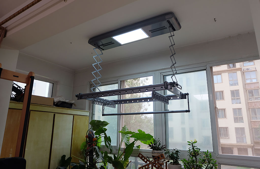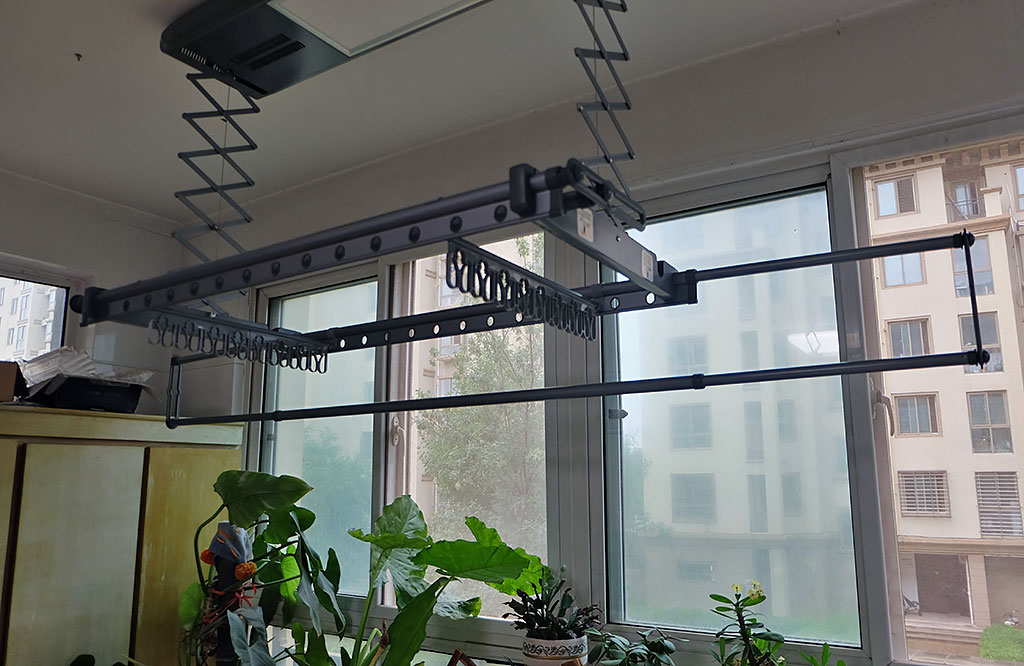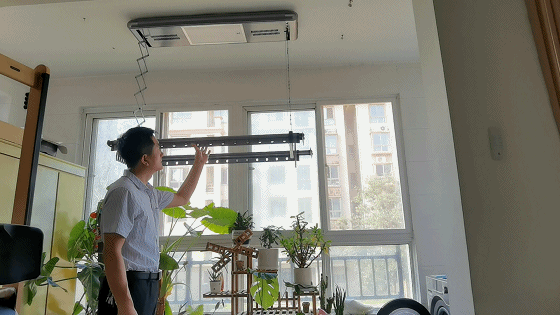 记得小时候,笔者在农村,母亲洗好衣服后,都会在庭院当中栓一条绳,用来晾晒衣物。后来随着结婚生子,我搬进了单元楼,没有了以前的大庭院,平时晾晒衣物只能在室内阳台。一开始安装的晾衣架是最初级的手摇式晾衣架,通过手摇器来控制晾衣架的升降。