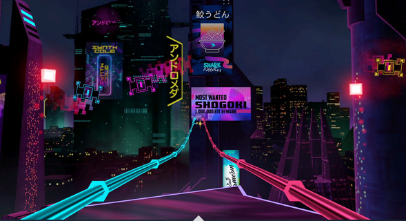 《Synth Riders》是一款音乐节奏打击类 VR 游戏,需要佩戴虚拟现实头盔玩。玩家将进入一个由霓虹复古风格和科技色彩的未来主义共同组成的赛博朋客世界中,其中还包括来自世界各地顶级的合成波、舞台音乐家带来的音乐艺术作品。