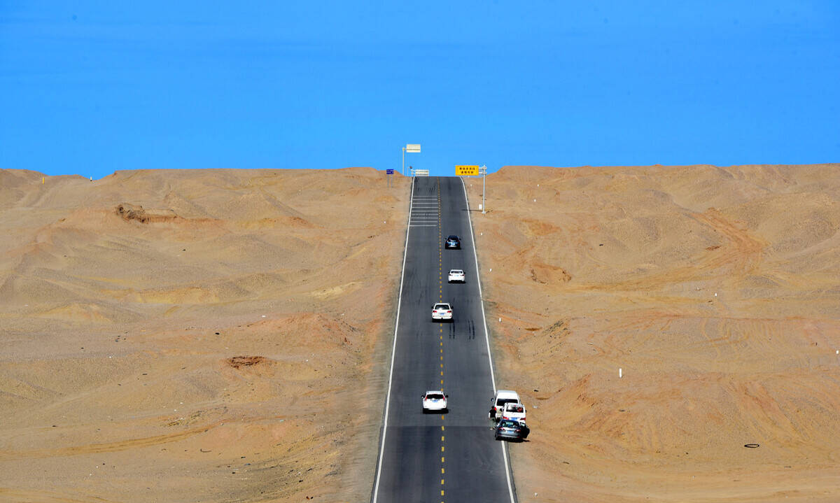 中国第一条沙漠公路,风景远胜于美国50号公路。