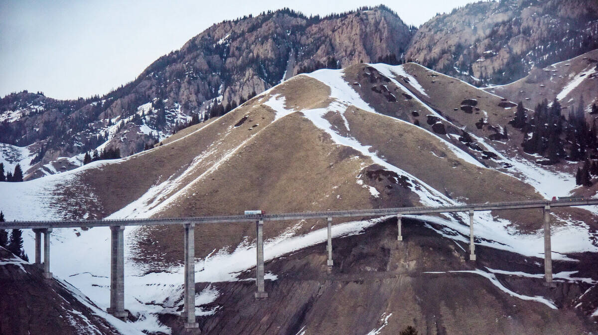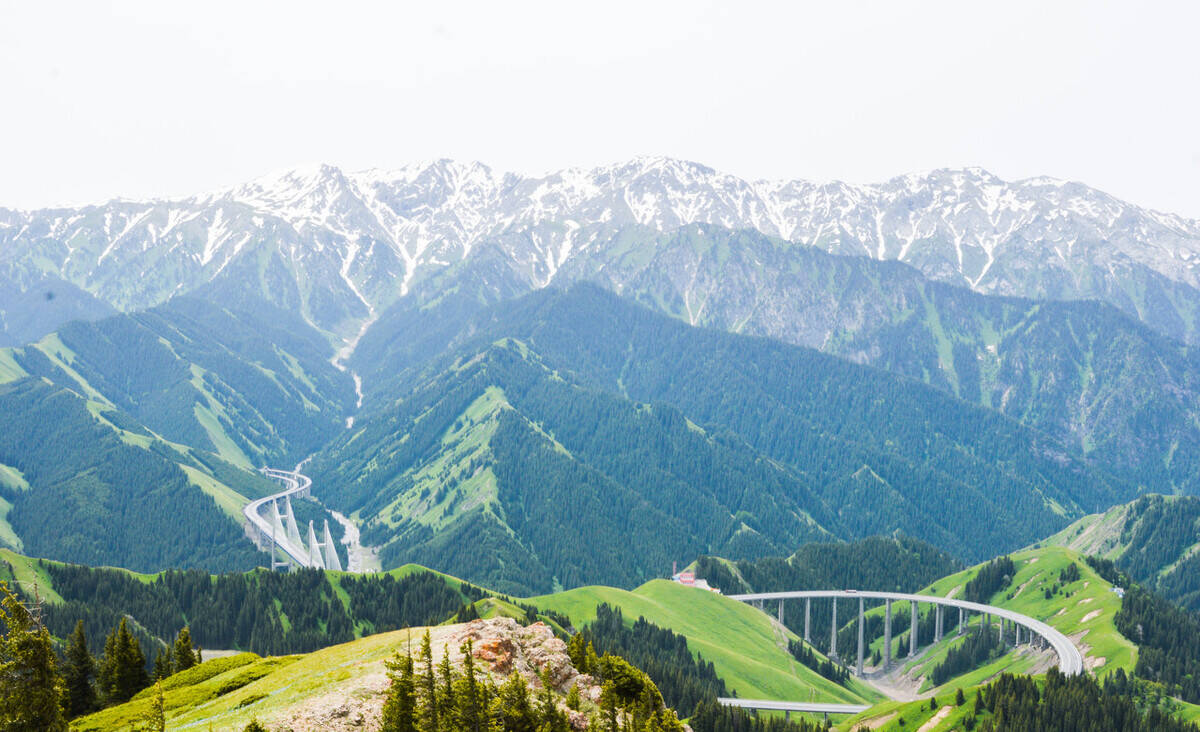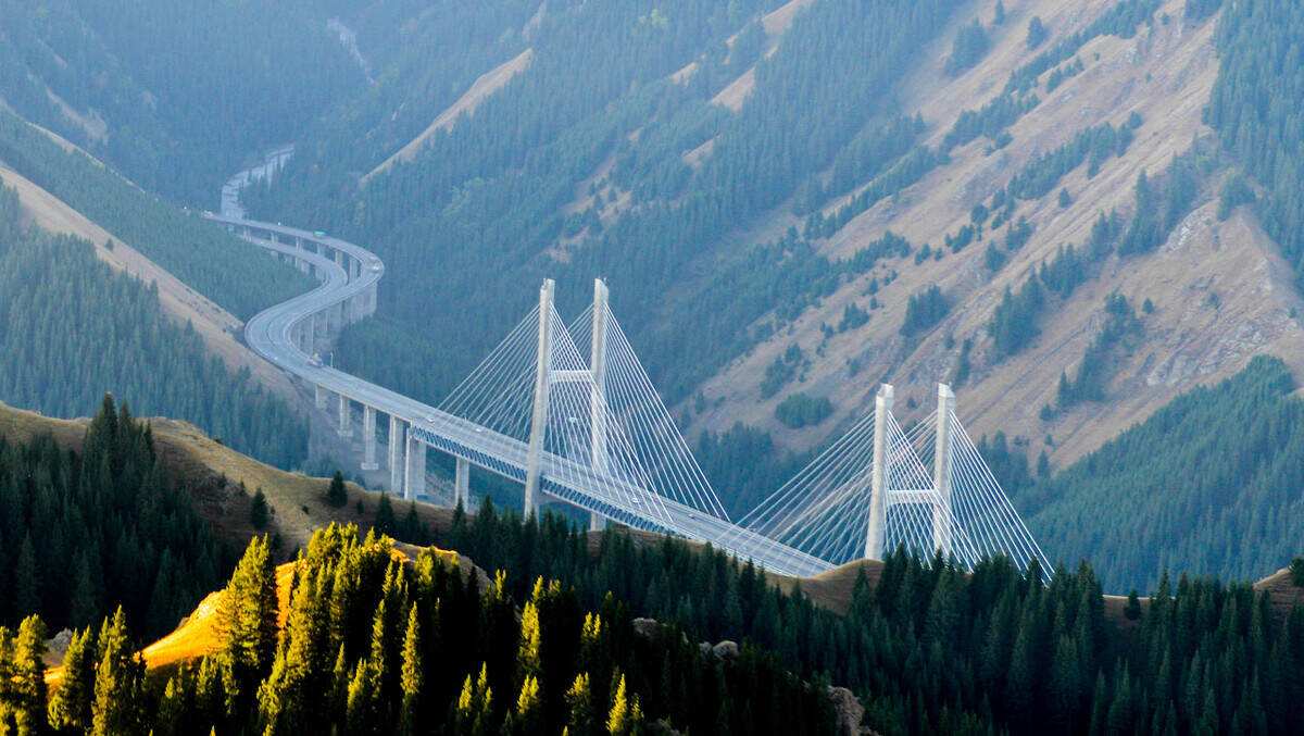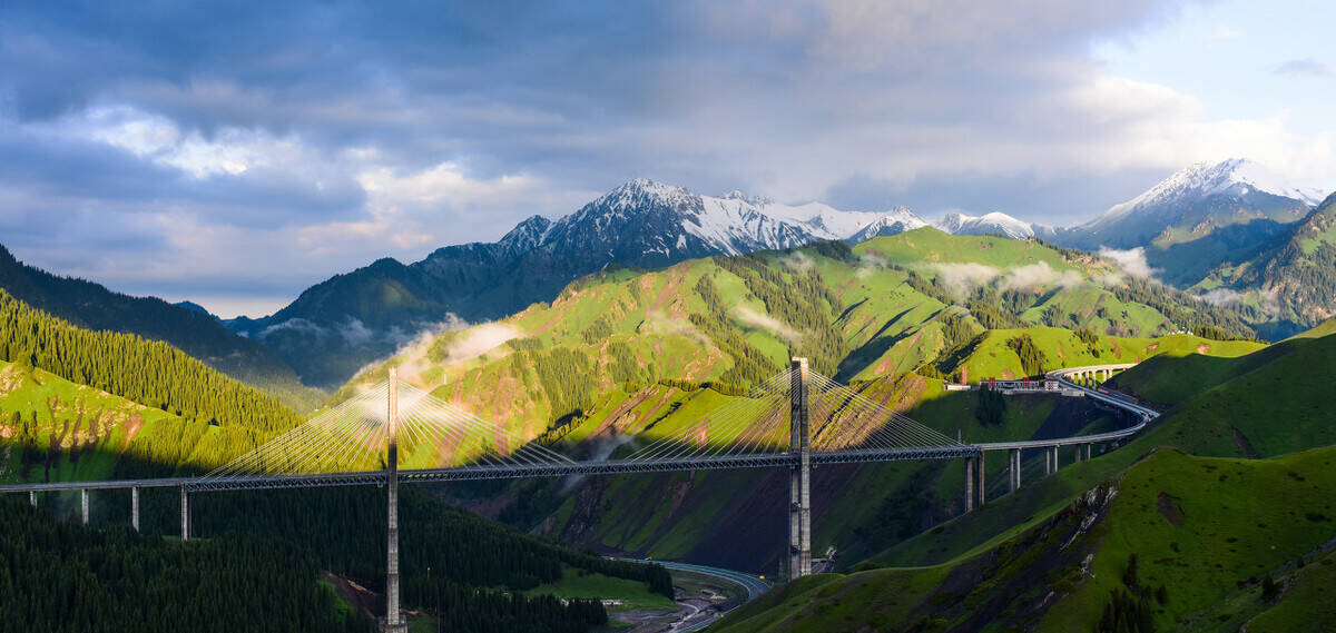 上帝赋予了新疆多姿多彩的自然景观,中国的公路建设者赋予了果子沟大桥无限风光。