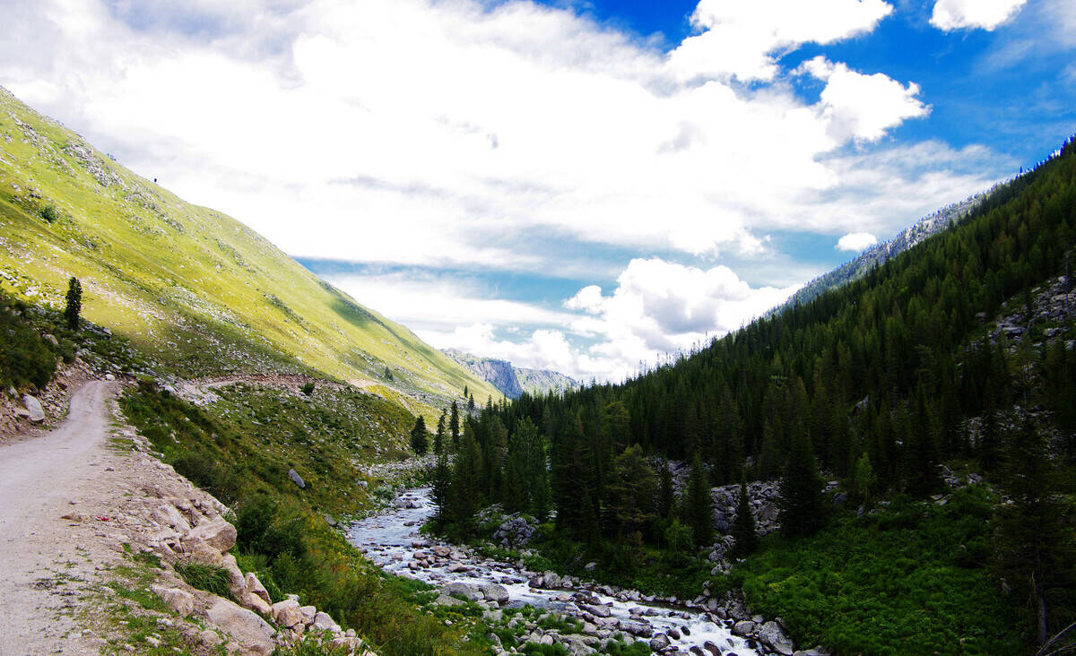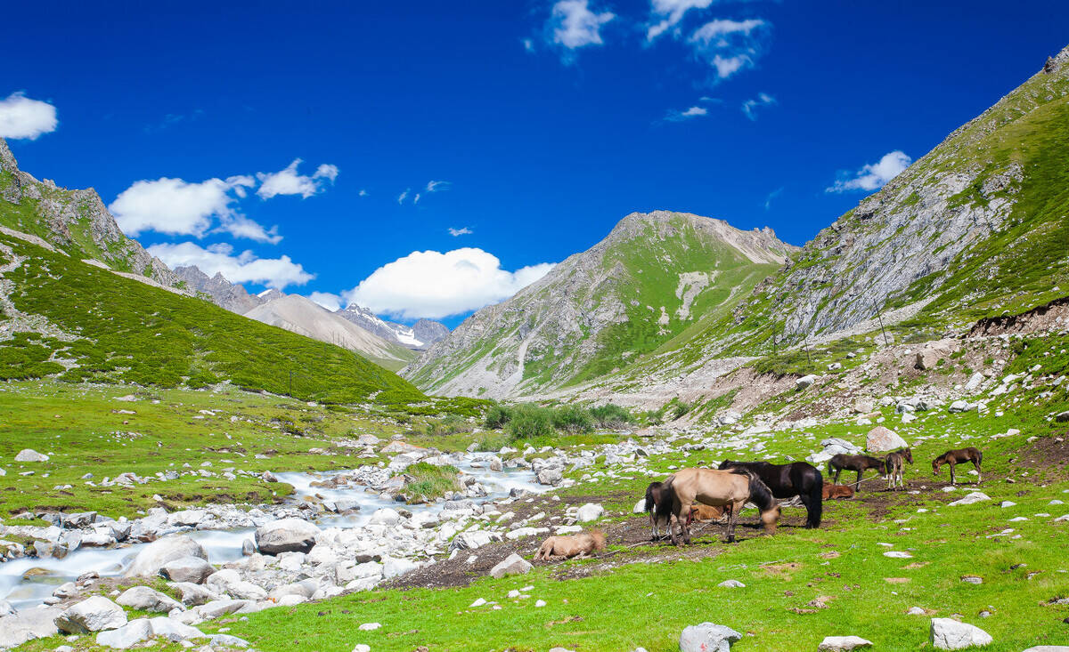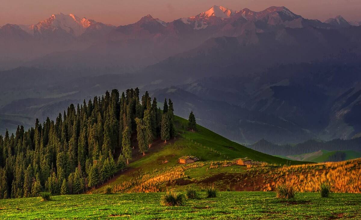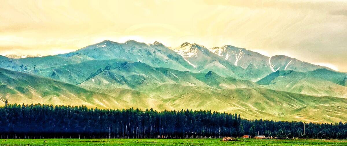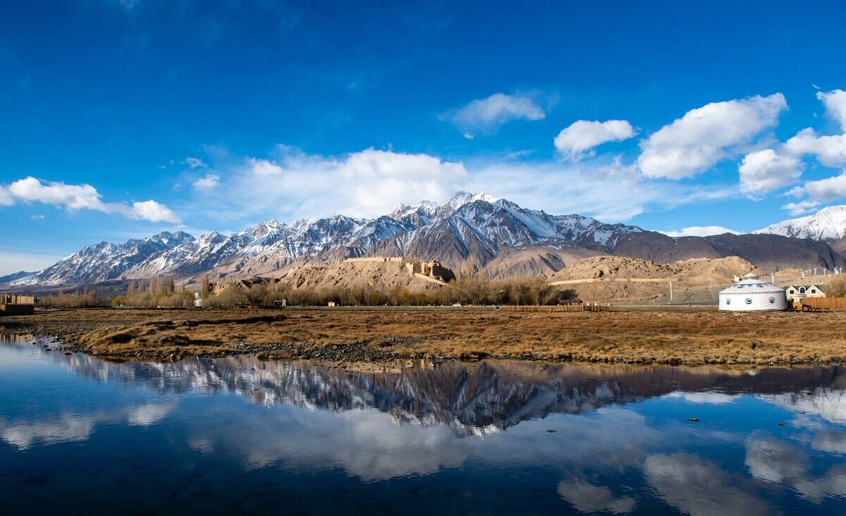 乔尔玛地区风景优美,南北都有依连哈比尔尕山和阿布热勒山的冰川纵横交错。