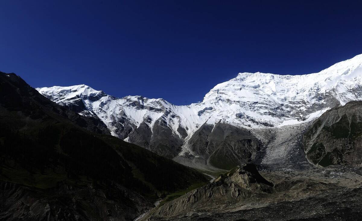 远远看去,黑白相间,从沟壑到冰川,构成了一副墨宝。